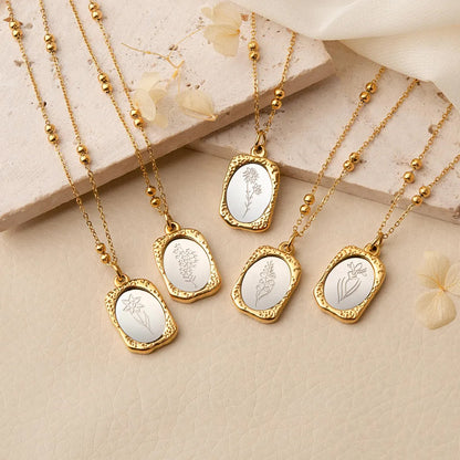 Our Square Birth Month Necklace is a beautiful way to wear your story. Featuring a detailed birth flower engraving on a sleek square pendant, this necklace celebrates the unique beauty of each month.