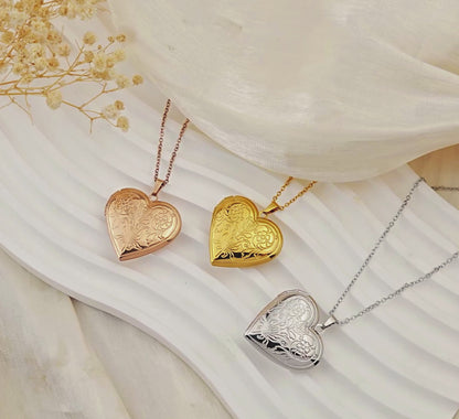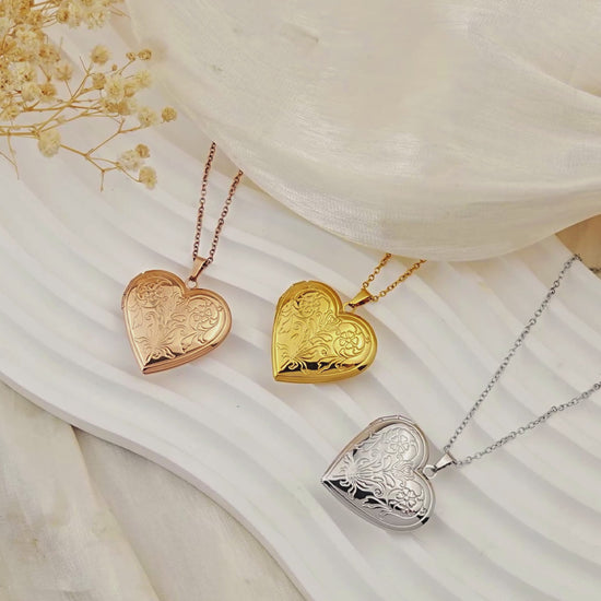 Hold your loved ones close with our beautifully made Anavia Heart Lockets. Designed with intricate floral engravings, each heart-shaped locket opens to reveal a special space for family photos, tiny notes, or cherished keepsakes. Available in timeless silver, gold, and rose gold, these lockets are a heartfelt tribute to the ones who mean the most.