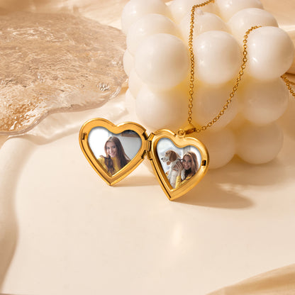 Carry the people and moments you treasure most with our personalized heart photo locket. Available in silver, gold, and rose gold, this elegant piece opens to hold two special photos, creating a keepsake you’ll cherish forever.